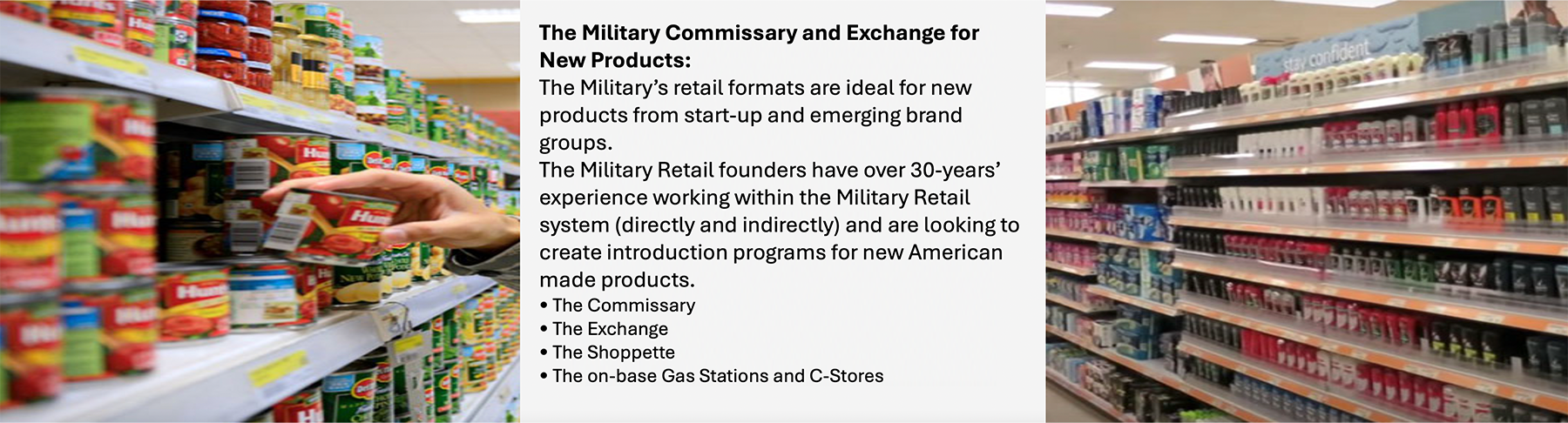 * Commissaries * Exchanges * Shoppettes * Veterans Canteens * Ship Stores * Military Food Service